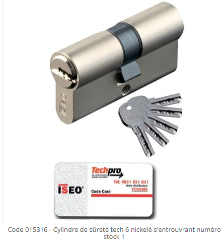 Cylindre de Sûreté Tech 6 Nickelé S'Entrouvrant 30x50